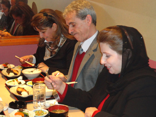 日本食を楽しむ様子。